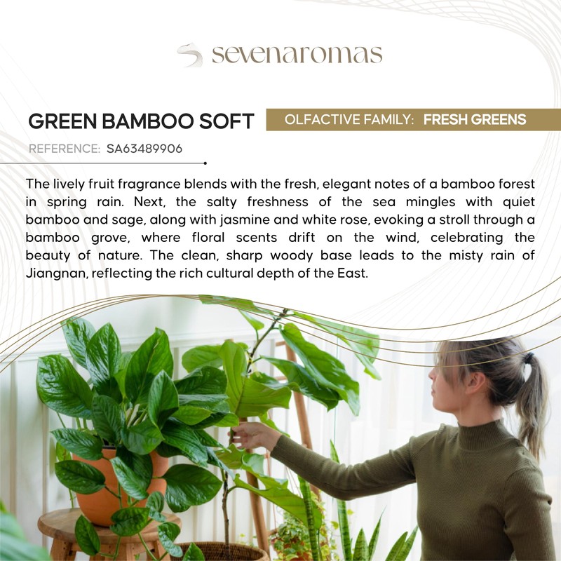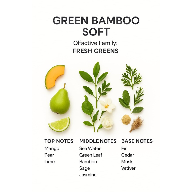 - Inspired by Nature’s Balance – A fragrance that embodies freshness, purity, and tranquility. Refreshing Top Notes – Crisp green and citrus accords bring clarity and vitality. Bamboo & Floral Heart – Soft florals blend with bamboo for serenity and refinement. Warm Woody Base – Subtle woods and musk add depth, comfort, and long-lasting presence. Versatile & Elegant – Ideal for homes, offices, spas, and resorts seeking natural luxury.