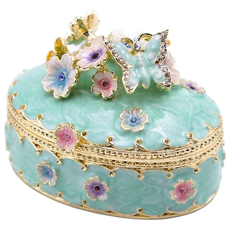 SEVENBEES Hinged Trinket Box for Women - Hand-Painted Enamel Jewelry Organizer & Storage Box with Crystal Rhinestones, Zinc Alloy Figurine Collectible Ring Holder