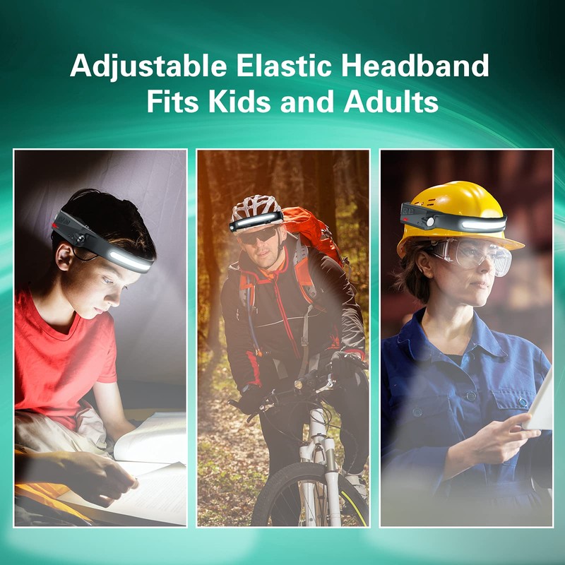 - 【Multiple Light Modes & Lightweight】SEVENKA comfortable headband light only weighs 2.47oz/70g with built-in 1200mAh lithium battery. You'll feel nothing even wearing it all day. Short press power button 5 times to cycle through COB high / COB low / XPE high/ XPE low mode/OFF. Long press power button while light is on, it can turn as SOS strobe light for emergency situation. Adjustable headbands fit for adults or kids, and it is provided to make your head get the best comfortable condition.