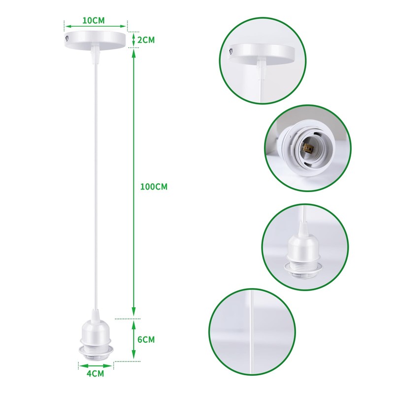 - Ceiling Pendant Light Fitting: Fit for E27 screw bulbs,with a holder diameter of 4 cm.applicable voltage: AC 250V; Wattage: 60 watts.2 colors (black, white) for your choice.Shade not included, bulb not included.
