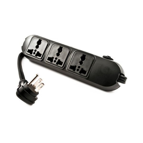 - 100-240v Power strip/surge protector for worldwide use. Small, light and compact for travel