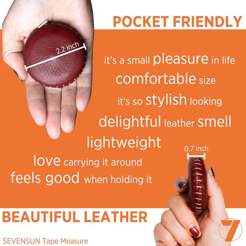 SEVENSUN 3 Pack Tape Measure, 60 and 79 inches Soft Measuring Tape, Retractable Top-Grain Leather Handcrafted Small Soft Pocket Tape Measure, Mini Sewing Cloth Tailor Tape Measure, Cinta Metrica