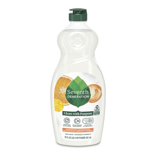 Seventh Generation Liquid Dish Soap, Clementine Zest & Lemongrass, Tough on Grease, 19 Fl Oz