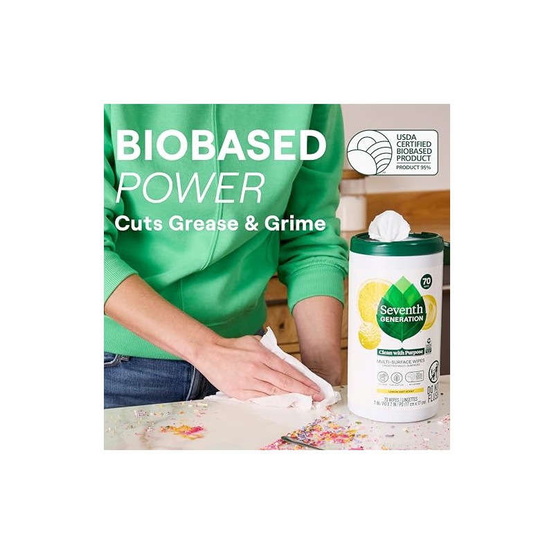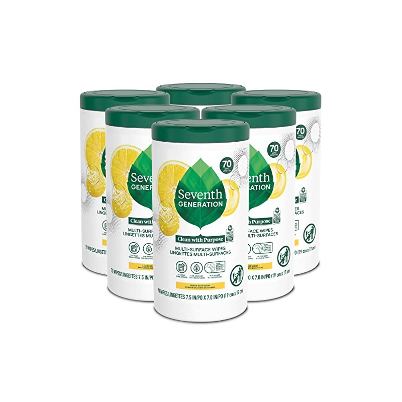 - Seventh Generation multi purpose cleaner wipes that work on most home surfaces