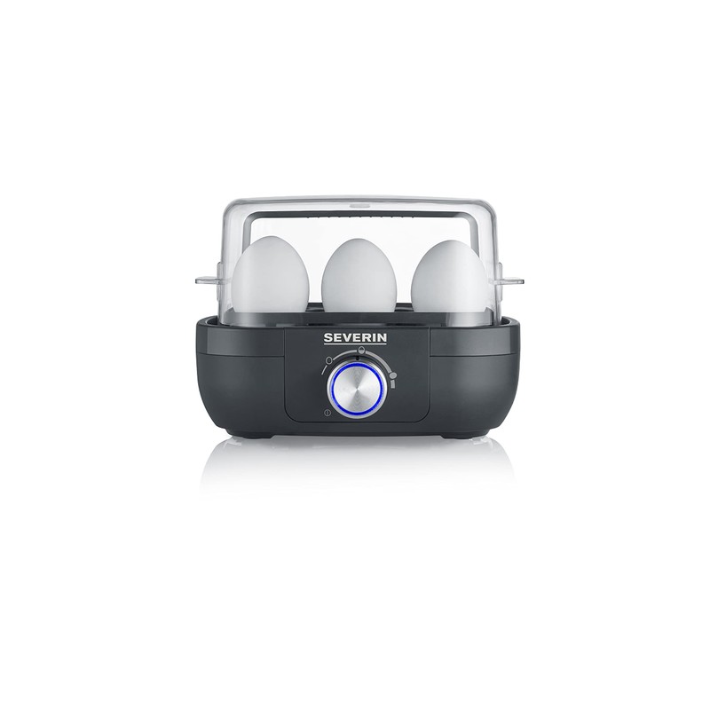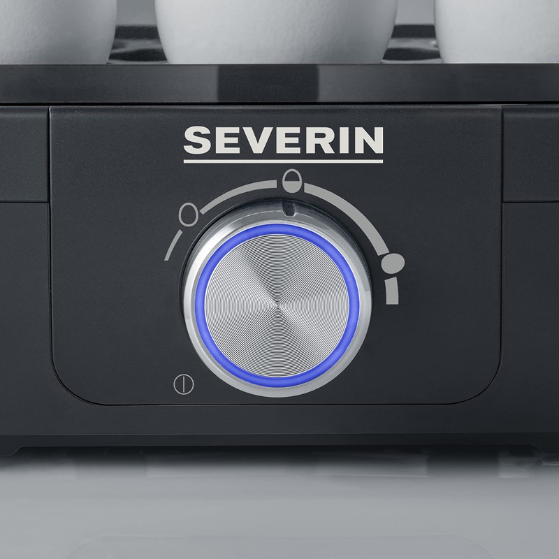 - Details - SEVERIN egg cooker for 6 eggs, adjustable hardness with electronic cooking time monitoring, with beep, measuring cup with egg piercer, item no. EK 3166