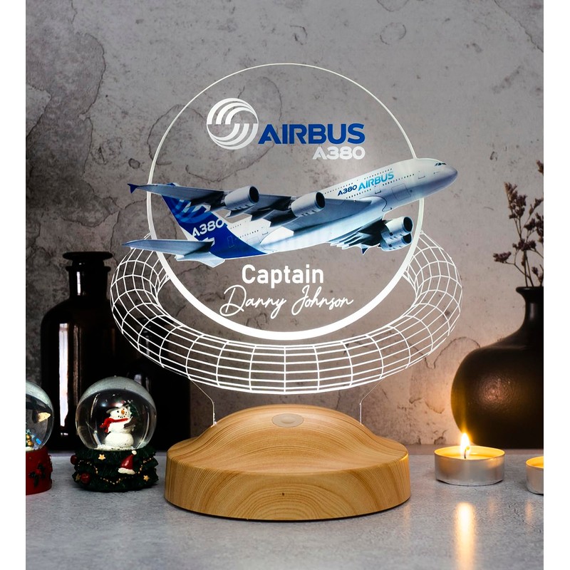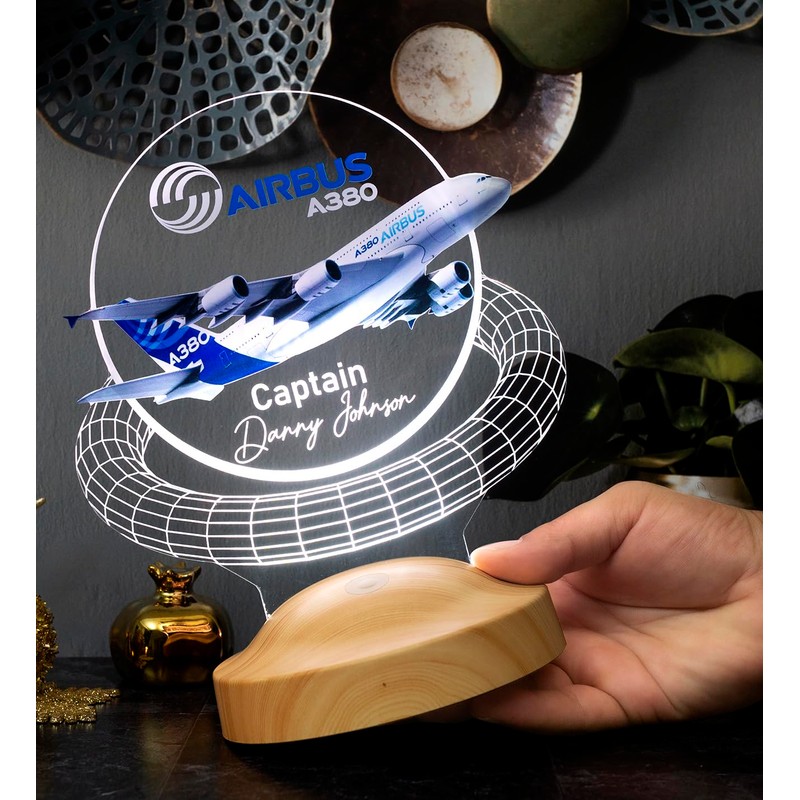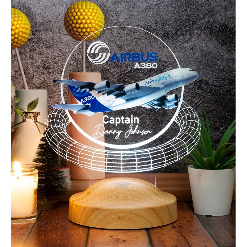 Sevgilambası Airbus A380 Yolcu Uçağı Renkli Baskılı Kişiye Özel 3D Led Lamba, Uçak - Pilot Hediyesi