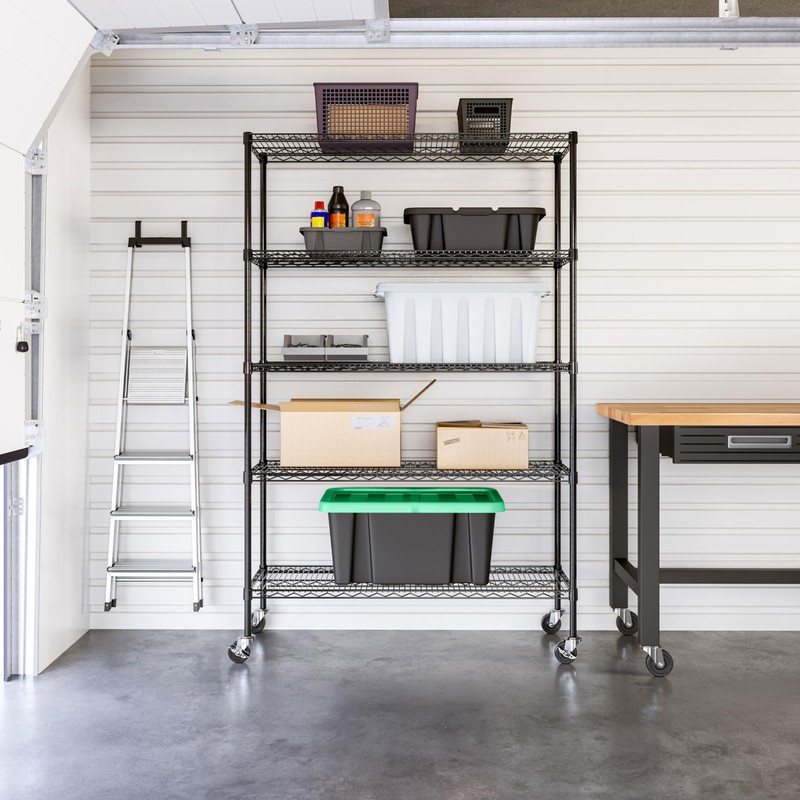 Seville Classics UltraDurable Heavy Duty NSF Solid Steel Wire Rack Storage Unit, Organizer for Garage, Warehouse, Office, Restaurant, Classroom, Kitchen, Black, 5-Tier Shelving, 48" W x 18" D