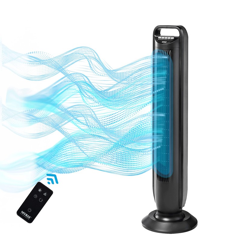 Seville Classics UltraSlimline Indoor Bladeless Oscillating Tower Fan Quiet Cooling LED Display Space-Saving for Home w/Remote and 7.5H Timer, Black, 40" 5-speed (115 degrees)