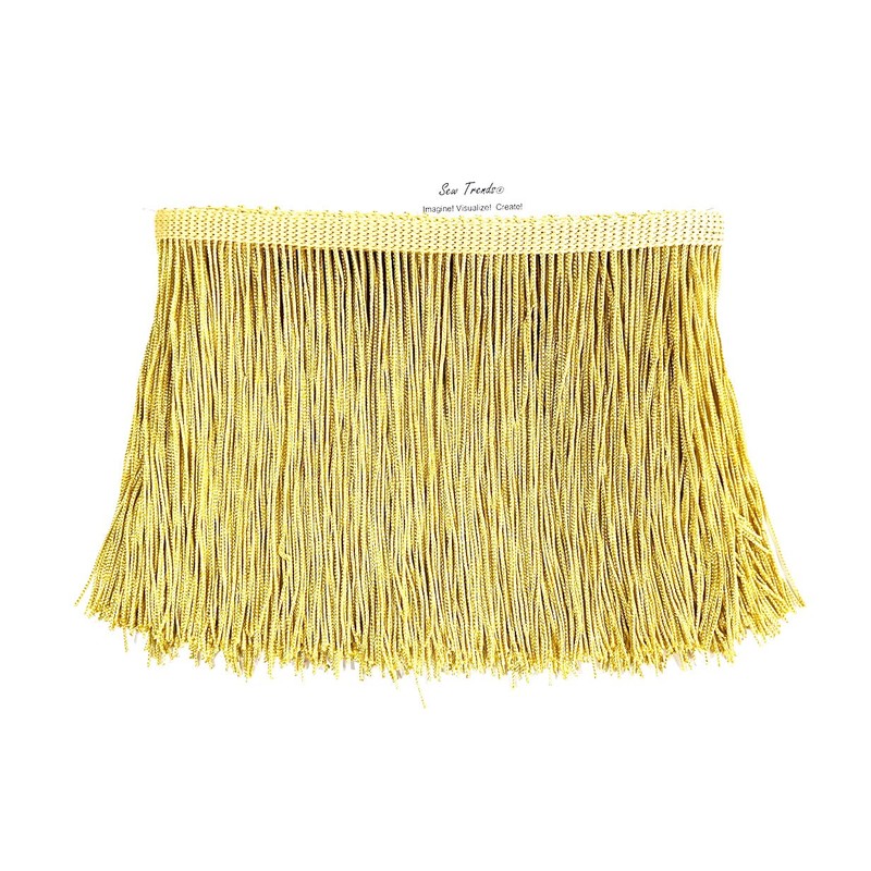 SEW TRENDS 10 Yards of 4" Long Chainette Fringe Thread Yarn Tassel Trim Braid Fringe for Crafts Sewing and Decor-Light Gold