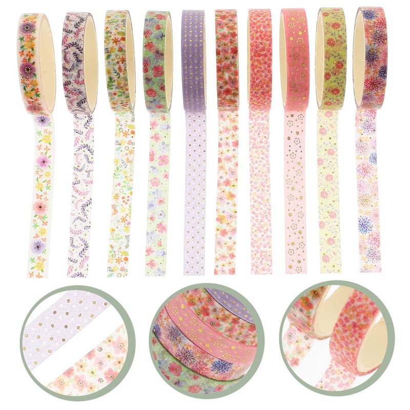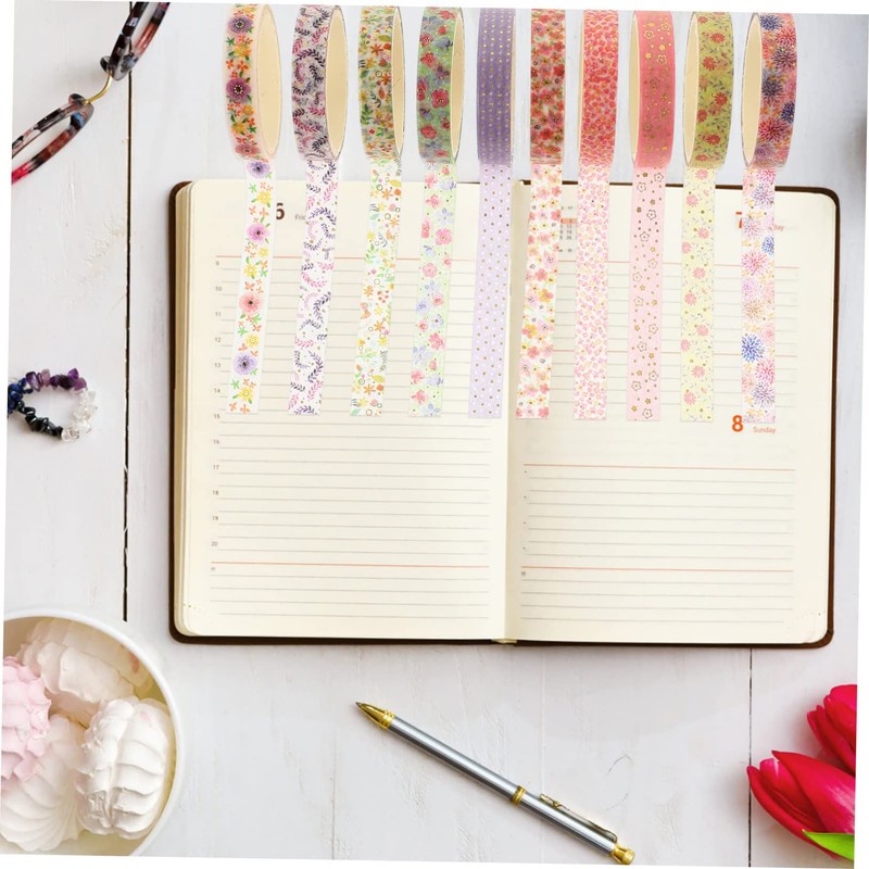 SEWACC 10rolls Decorative Washi Tapes Thin Tape for Scrapbooking Journals and Wrapping Each for Craft and Creative Projects