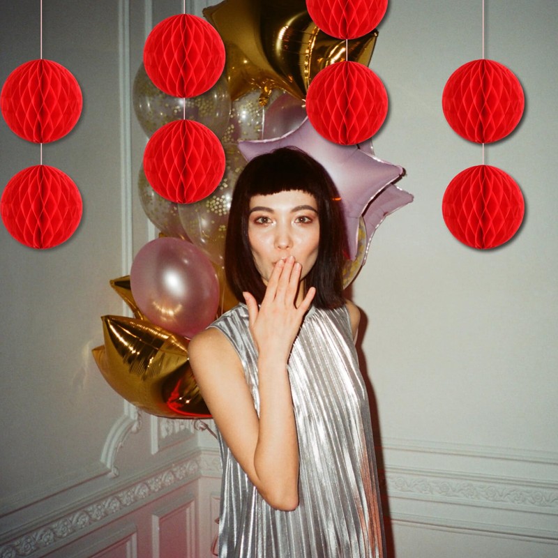 - This red honeycomb ball ornament is perfect for a variety of party lanterns.