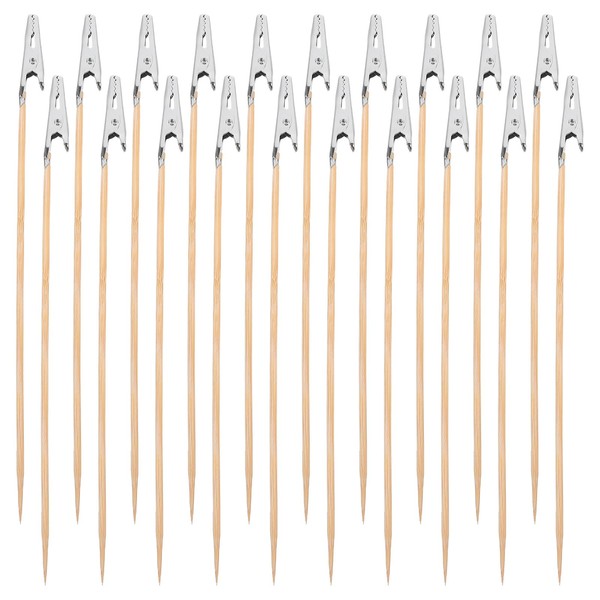 SEWACC Model Painting Alligator Clip Stick, 20pcs Wood Metal Gator Clamp Long-Tailed Alligator Clamp for DIY Crafts Place Card Photo Memo Hobby Model Building