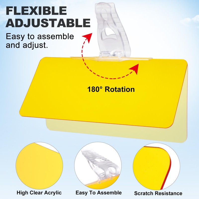 • Adjustable visor extender: Equipped with clips, it can be firmly fixed to the original car visor or other places. The direction of the extender can be adjusted 180 degrees up and down