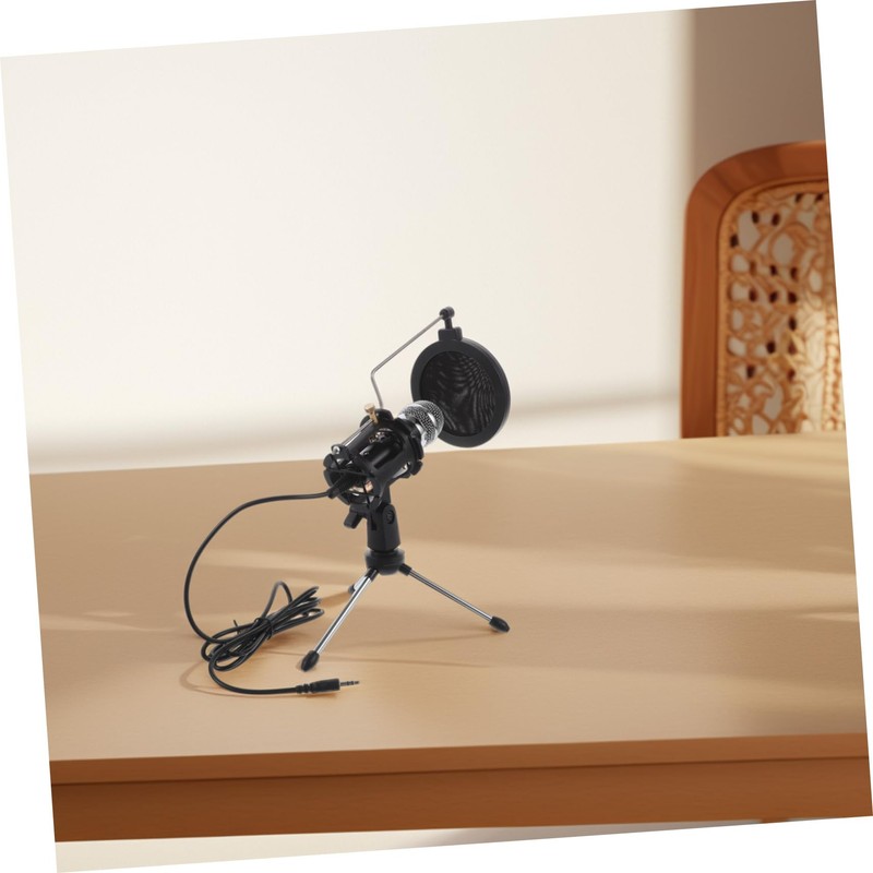 1 x 3.5mm converter, 1 x wired microphone, 1 x USB conversion cable, 1 filter, 1 x folding tripod, 1 x microphone cover, 1 x microphone stand