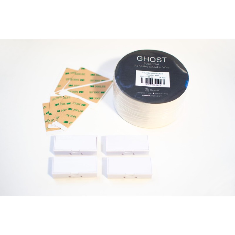 Sewell Ghost Wire 2.0, Super Flat Adhesive Speaker Wire Kit with 4 Terminal Blocks, 16 AWG, 2 Conductor, 25 ft. Spool, White