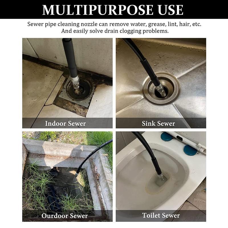 - 【 Multi functional 】 The sewer nozzle is very suitable for flushing and cleaning pipes with ordinary water pipes, providing efficient and high-quality cleaning for soft sewer blockages such as grease, fine sand, hair, fine gravel, and general waste blockages.