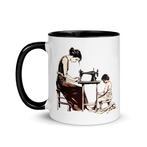 - Give your mother, grandma or girlfriend a gift that will warm her with our ceramic mug in retro design of a seamstress and daughter!