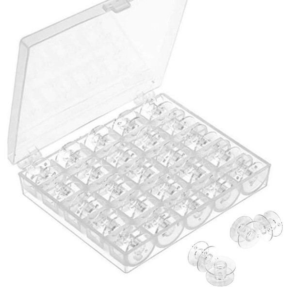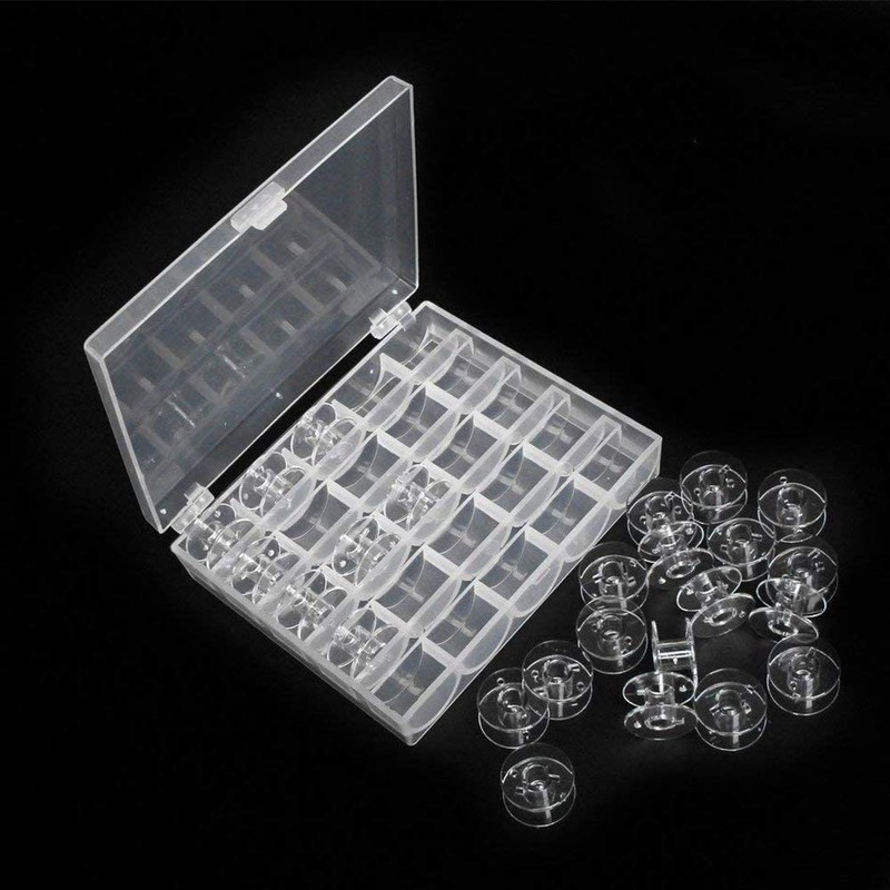 Sewing Machine Bobbins 25 Pack Transparent Plastic Sewing Bobbin Spools Empty Bobbins Spools Plastic Storage Box for Home Sewing Accessories Tools