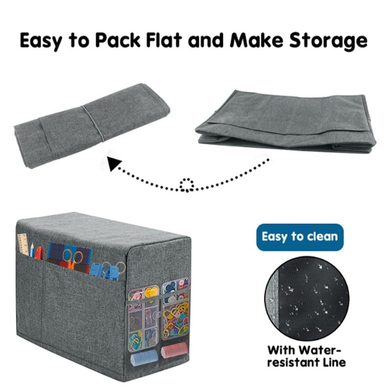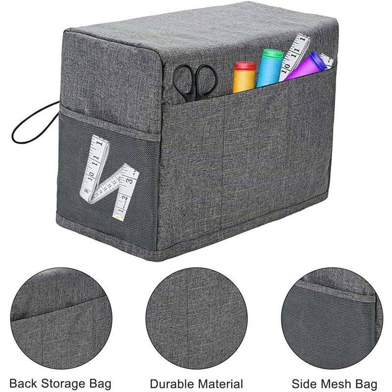 Sewing Machine Cover with Storage Pockets, Foldable Dust Cover Protective Cover Compatible with Most Standard Sewing Machine, Grey