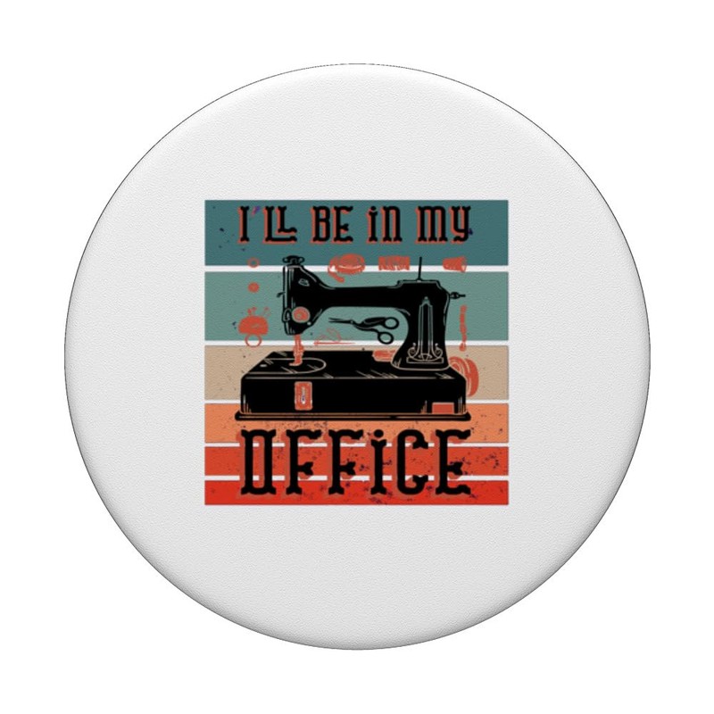 - Express your passion for sewing with this unique design, featuring a vintage sewing machine and the witty phrase "I'll Be in My Office." Perfect for crafters and sewing enthusiasts, this artwork captures the essence of creativity and dedication