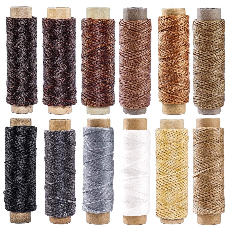 - Waxed Thread Cord:Made of high quality material and wax coated, so tightening the seams is very simple, smooth, strong and durable. Each thread length is 32.8 yards / 30 m, total spool 393 yards / 360 m, thread size: 1 mm (150 D).