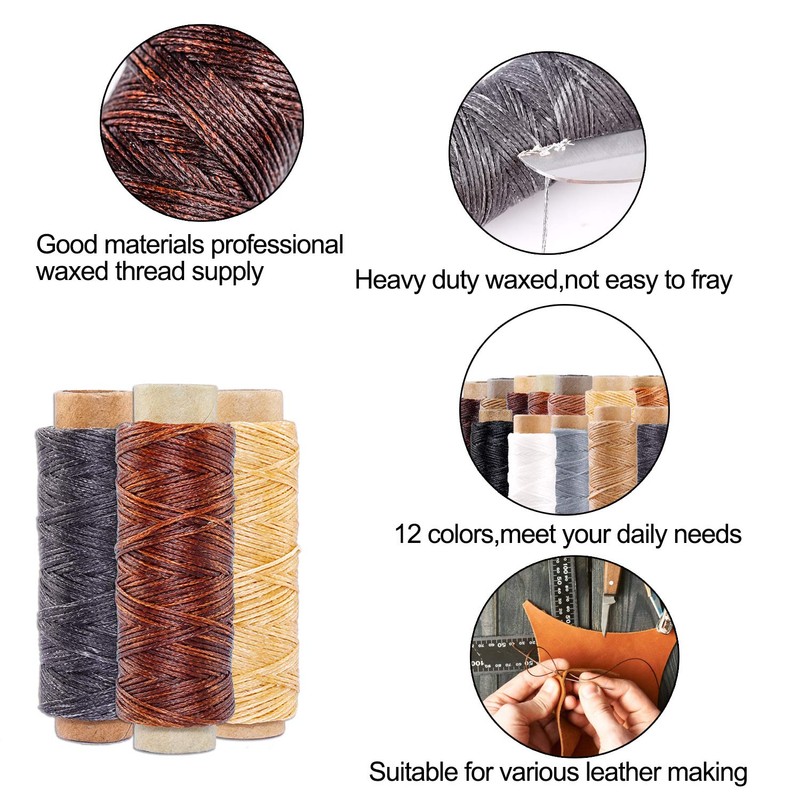 - Adopt the method of screw stock, sensitive and exquisite. And the sewing threads are made of high-quality wax, are sturdy and durable, not easy to break and are suitable for making exquisite bags, wallets and leather goods.