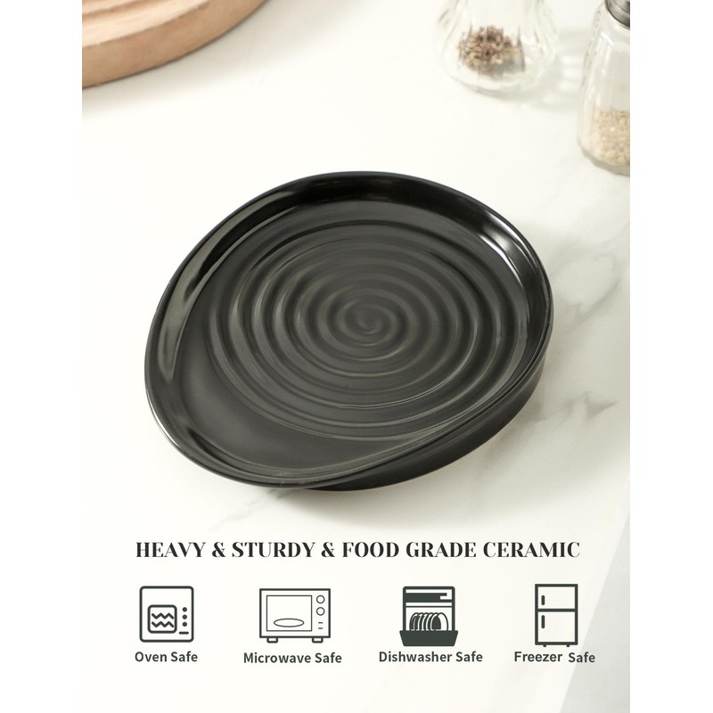Seyatoo Ceramic Spoon Rest for Stove Top, Spoon Holder for Kitchen Counter, Farmhouse Cooking Utensil Holder for Spoons, Ladles, Spatula, Matte Black