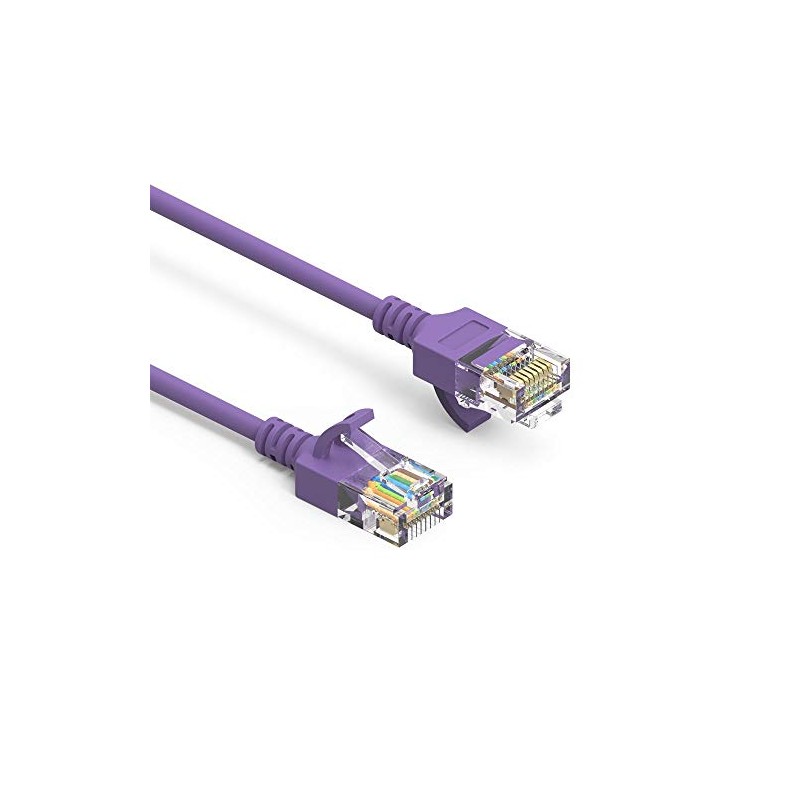 SF Cable 50ft Cat 6A UTP Slim Ethernet Network Booted Cable, RJ45 Plug, 28AWG, Pure Copper Wire - Purple