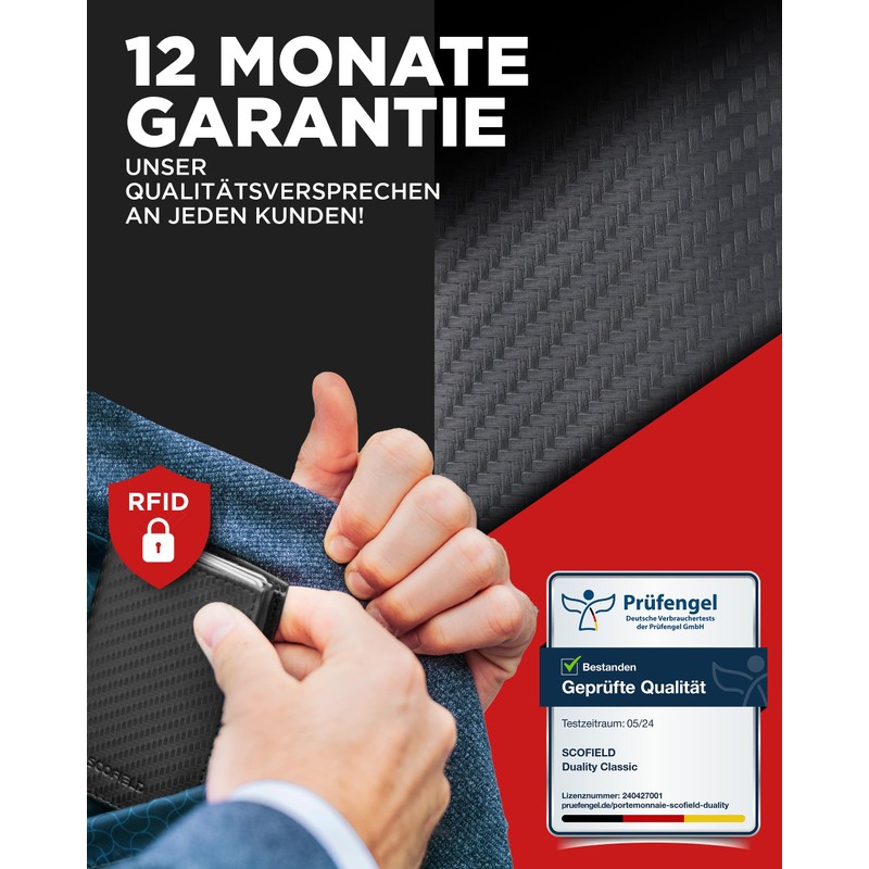 - Premium quality - Scofield stands for quality, so we only use high-quality materials for our wallets and subject every production to strict quality control by SGS