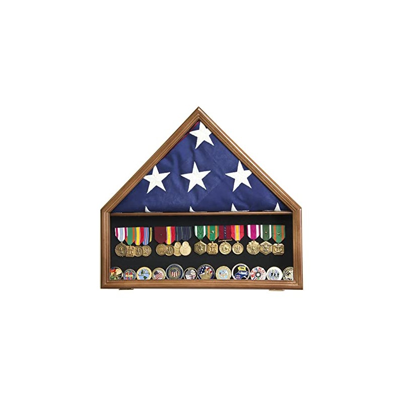 sfDisplay.com,LLC. Flag & Medals Pins Patches Insignia Challenge Coin Military Display Case Cabinet Rack (Walnut Finish)