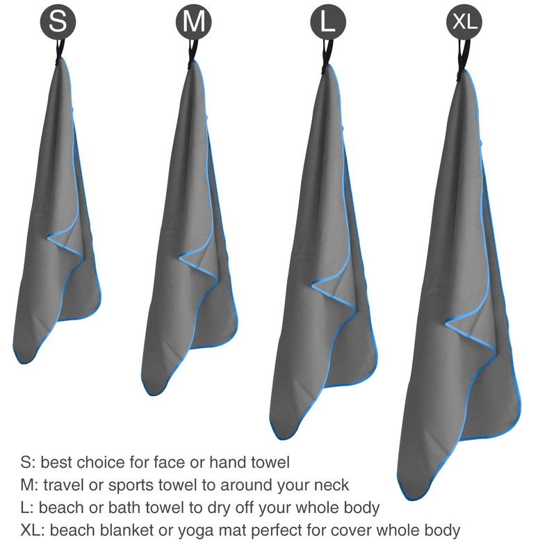 - Great Sizes & Options: Sfee quick dry microfiber towel set have four size to choose. S(32" x 16" + 32" x 16")is good as a face or hand towel to dry off sweat or water. M(48" x 21"+ 24" x 15")is perfect for sports around your neck. L(60" x 30"+ 24" x 15")is great as a beach or a bath towel to dry off your whole body. XL(72" x 32" + 24" x 15")is an ideal choice for a beach blanket or a yoga mat, it covers your whole body. Our backpacking towel is the best travel or sport accessories for you.