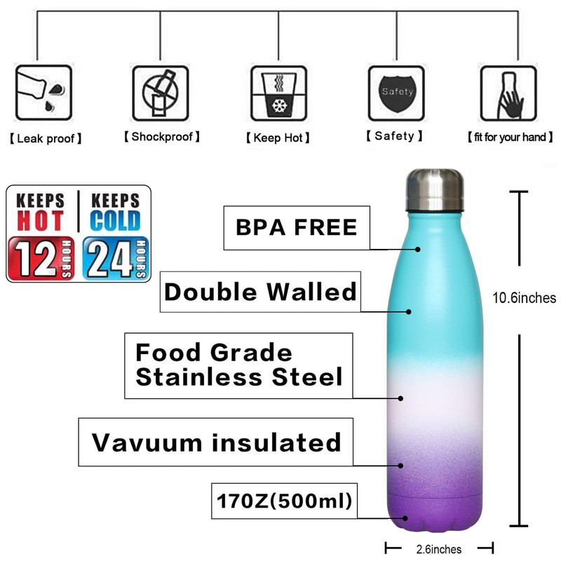 - KEEP HOT & COLD: Keep your water hot or cold. Double wall vacuum insulated technology design make it keep hot up to 12 hours, keep cold up to 24 hours. Big bonus for big enough mouth (1.3 inch) to fit ice cubes. Now, enjoy cool and fresh in hot summer, enjoy the warmth in cold winter. Perfect for office workers, students, sports, outdoor enthusiasts, breast-feeding mothers, etc.