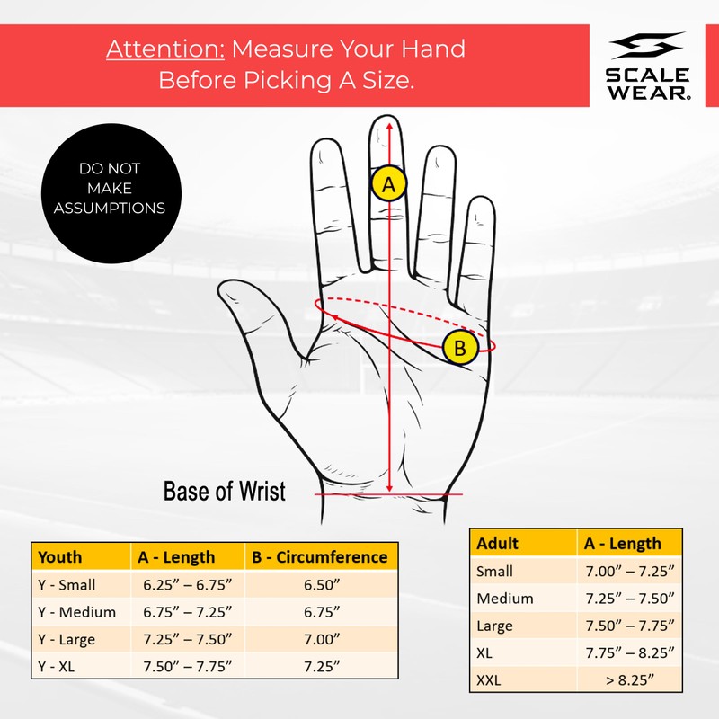 - High-Grip SFIA-Certified Palms: Scale Wear Pro Stealth football gloves feature a durable, tacky silicone palm for reliable grip in various weather conditions. SFIA-approved for use in high school and NCAA games. Unique Skull image on back of gloves for a Stealth look.
