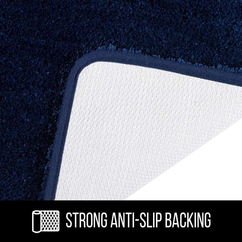 SFLXO 60cm x 40cm Non Slip Bath Mat Machine Washable Durable Soft Fluffy Microfiber Bathroom Mat Water Absorbent Bath Rug Navy Blue