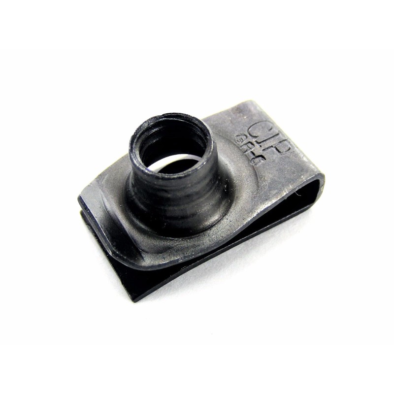 Clips: 5/16-18 thread. 5/8" center of hole to edge. Black finish.
