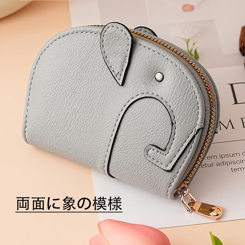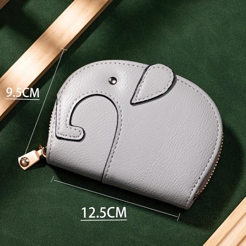 SFTRADE Credit Card Case, Card Case with Coin Purse, Cute Elephant, Thin, Slim, Lightweight, Large Capacity, Holds 11 Pu Characters, Women's, Men's, Skimming, gray