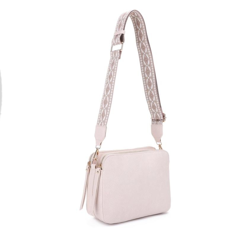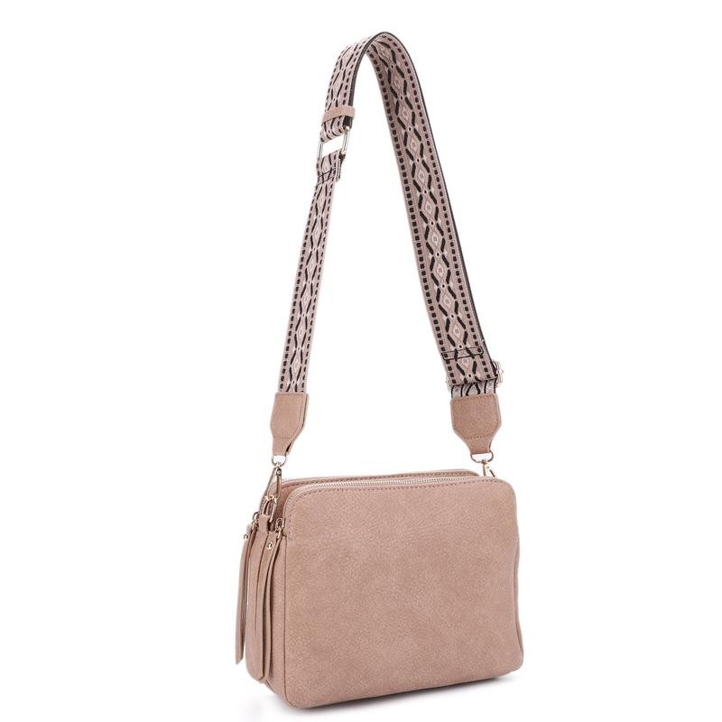 SG SUGU Andrea Triple Compartment Shoulder Bag with Detachable Adjustable Strap:_STONE