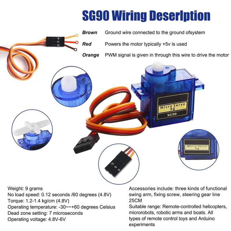 - Versatile & Easy to Use: The SG90 motors are compatible with most microcontroller platforms like Arduino, Raspberry Pi, and other RC models. They are easy to integrate into various projects, making them ideal for both beginners and advanced users.