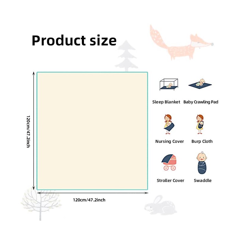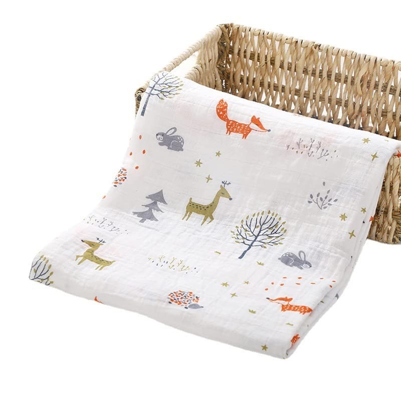 - The baby muslin measures 47" x 47", offering a generous size for swaddling and providing comfort to newborns, infants, and toddlers. The adorable forest fox design brings a playful charm to this must-have accessory, suitable for both baby girls and boys. Wrap your baby in this delightful muslin swaddle blanket adorned with the enchanting forest fox pattern for a peaceful and stylish experience.