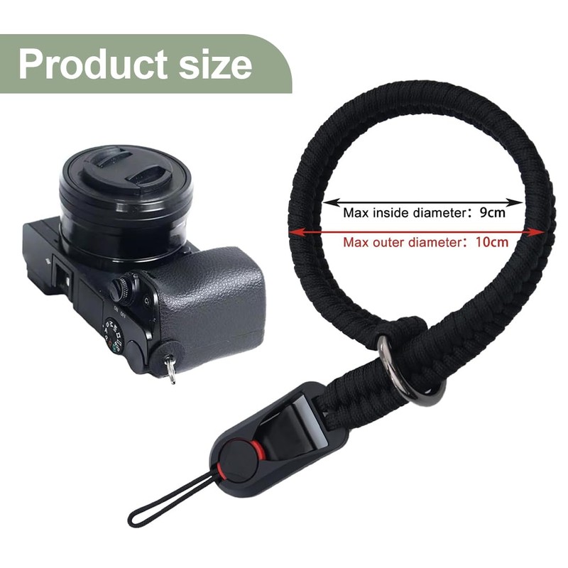 • Precise Size Adjustment The maximum outer diameter of the camera lanyard hand strap is 10cm and the maximum inner diameter is 9cm, perfect for different camera sizes.