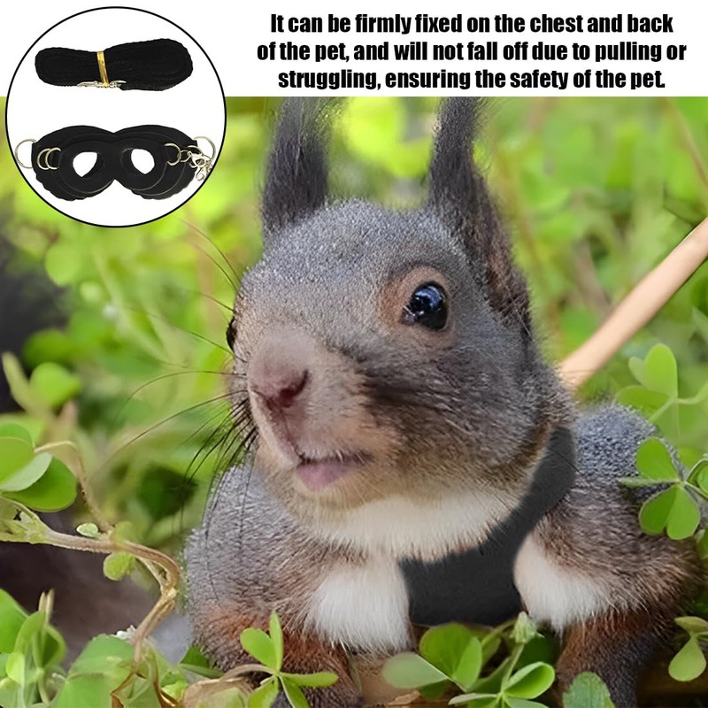 SGERUFZ 3 Piece Harness and Lead Set for Small Pets Training and Walks Vest for Squirrel Hamster Rat Black