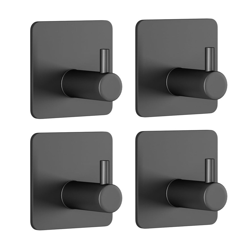 - Praktisches 4er-Set: Handtuchhalter schwarz ohne Bohren mit wasserfesten Klebepads und starker Haftkraft. Die funktionale Hakenform macht sie zum idealen Badezimmer Zubehör für jede Wohnung und sorgt für Ordnung im Bad oder WC