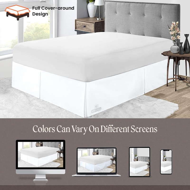 SGI 9 Inch Drop Queen Size White Solid Bed Skirt Split Corner Pleated Style Easy Fit Easy Care Fade & Wrinkle Resistant- Microfiber Made