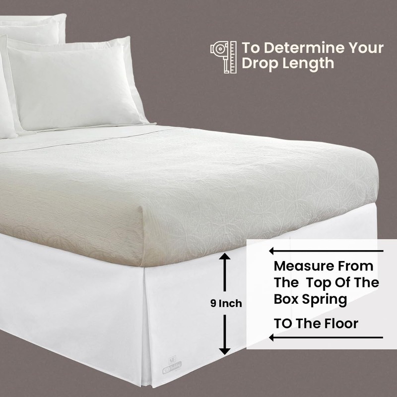 - TIME TO DRESS UP THE BED - Dress Up your Bed with Beautiful Pleated Style 9 Inch Drop Queen Size Split Corner Bed Skirt Which is made of ultra strong Microfiber Fabric Which lasts for years and gives your bedroom a new touch and elegance.