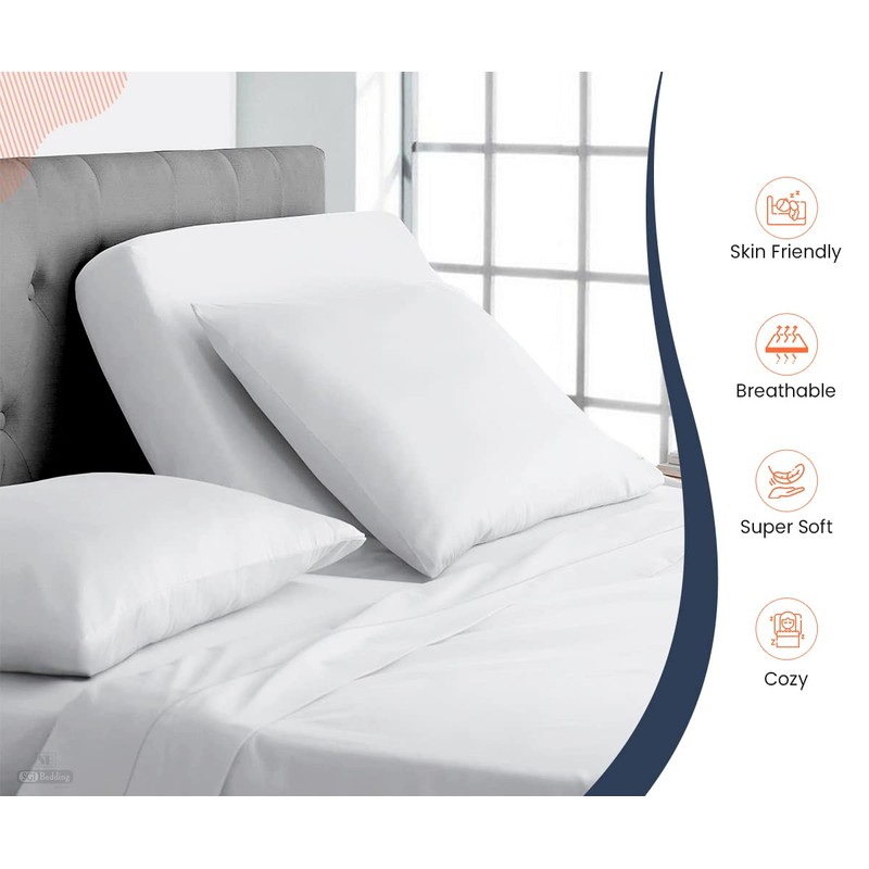 • OPTIMUM QUALITY BEDDING SHEETS: We have crafted these sheets so SOFT & COMFORTABLE to sleep on and staying relaxed. The product is made with High Quality Fabric Egyptian cotton Stain Resistant. Made using all natural materials, Can be machine washed and get softer over time. Our elegant top split fitted sheets are machine washable and retain color over time.To extend durability, warm wash and light dry.