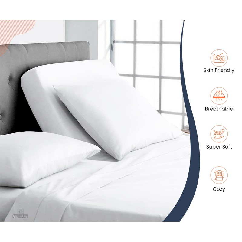SGI bedding 39" King Split Top Flex Head Sheet Set 1800 Threads Flex Top Sheet for Adjustable Bed 4 Piece Sheet Set 18" Deep Pocket for Sleep Number Bed - White