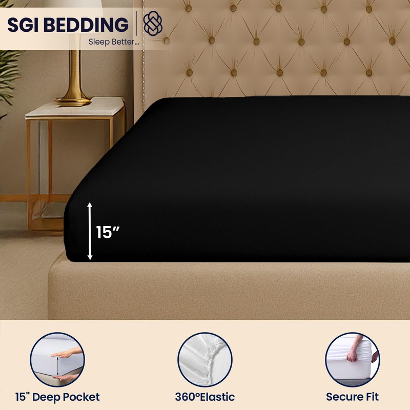 SGI Bedding 80" W x98 L 1 Pc Texas King Fitted Sheet Only 100% Egyptian Cotton - 600TC Fits 15" Deep Pocket - Soft Breathable Luxury Oversized Sheets, for Extra Large Beds - Black