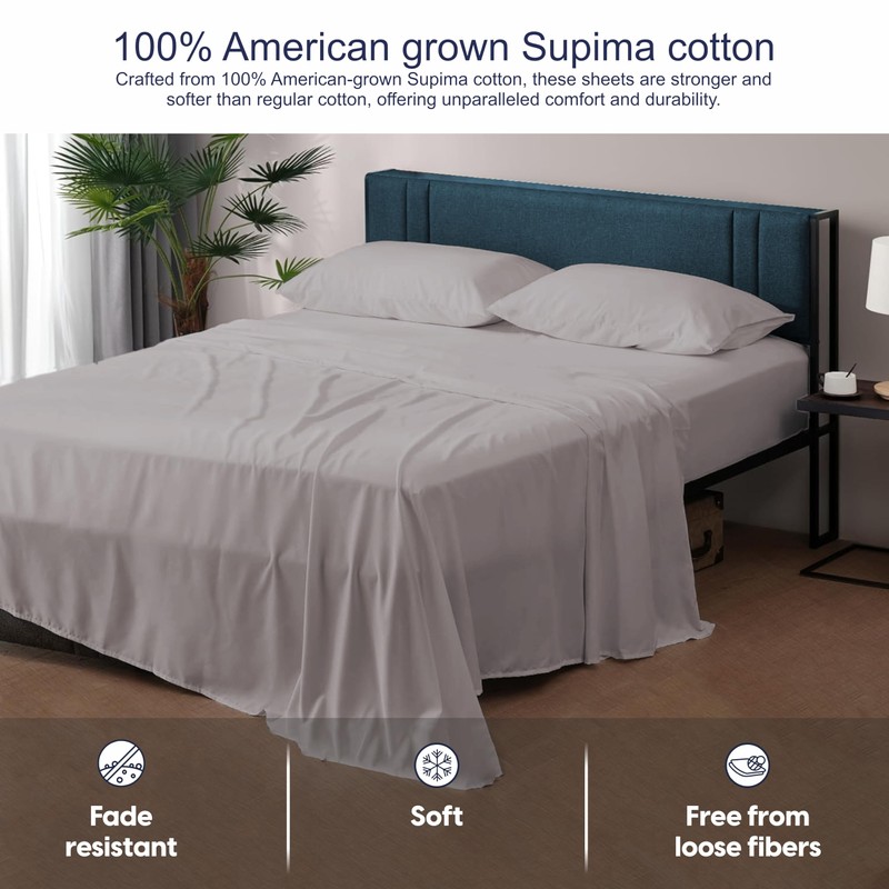 - Cool and Calming Sheets: Crafted from superior Supima cotton, these sheets ensure superior breathability, ensuring airflow and regulating temperature for a comfortable night's sleep. Balancing both comfort and style, they boast an elegant and timeless design. Ideal for year-round use, these comfortable sateen bedsheets are cool and breathable.