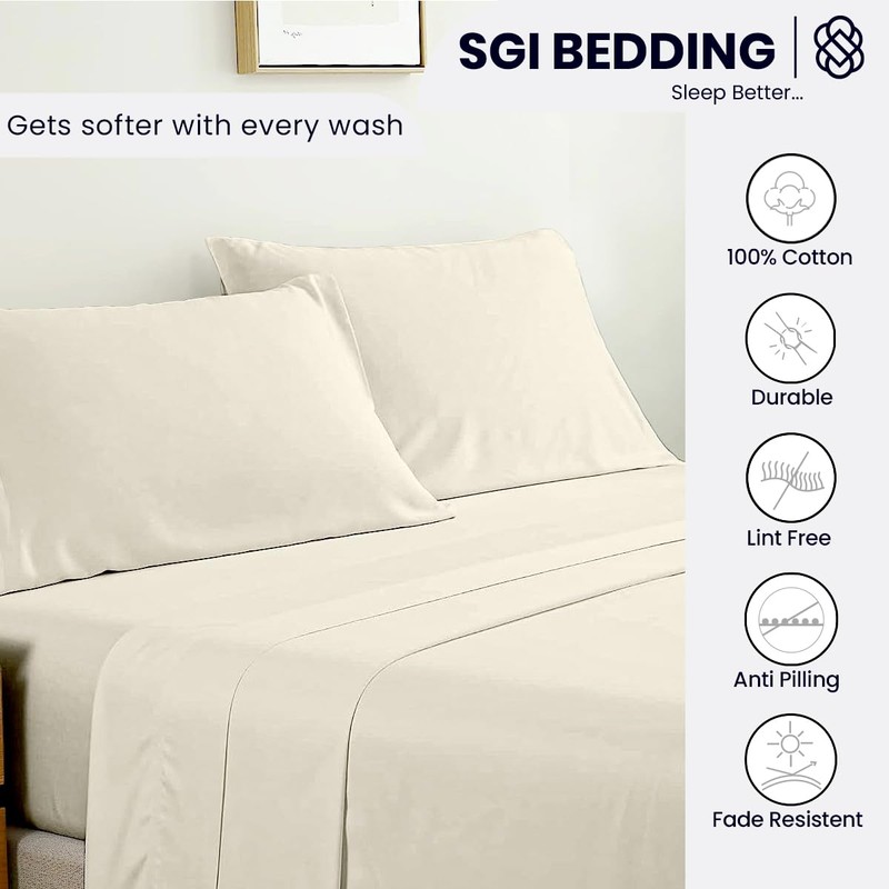 SGI bedding Luxury 4 Piece Egyptian Cotton Sheets Queen Size - 1000 Thread Count, 100% Cotton Sheets, 15" Deep Pocket Sheet Set, Breathable, Soft and Premium Cotton - Ivory