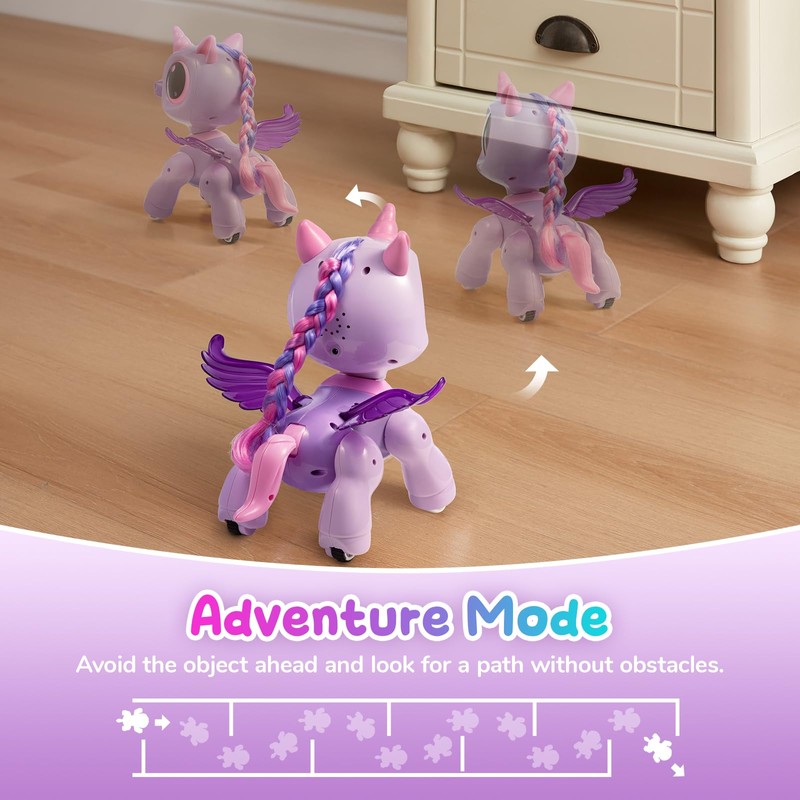 - Rich and Lively Movements: This adorable remote-controlled unicorn robot brings endless joy with its cute appearance and a variety of fun movements. It neighs, steps, slides, runs, sits, stands, and even dances to the beat. It's perfect for children to operate on their own and have fun!